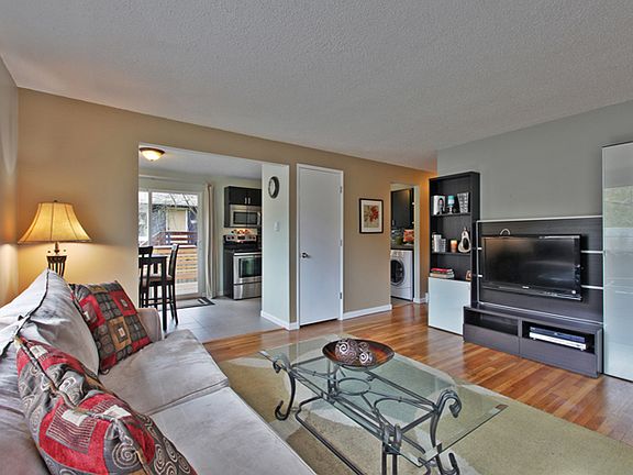 Three bedroom home with hardwood floors through out. Larger than it looks, with 960 square feet. Dining room opens to a nice sized deck.