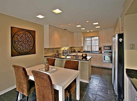 This handsome contemporary is situated in the Rolling Trails subdivision, and conveniently located to freeways, shopping, and hike and bike trails. The school district for this neighborhood is the coveted Merriman Park Elementary school.The sizeable living room, with slate floors, is anchored by a smooth concrete fireplace, and enjoys views of the beautiful backyard and pool area. An adjacent wet bar adds convenience of this space.White cabinets, granite counters with travertine backsplash and stainless steel appliances can be found in the light filled kitchen, with adjoining breakfast area. The den has an abundance of windows, and also overlooks the pool and outdoor living areas. The master bedroom is also on the first level.Three additional bedrooms can be found upstairs, together with another full bathroom.An oversized, two car attached garage and large laundry room add to the many amenities of this lovely home.