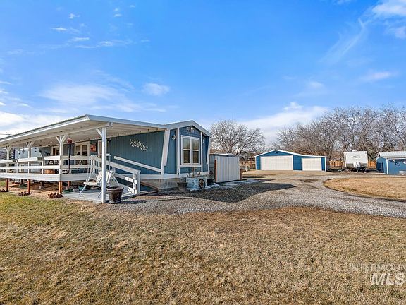 Great pride of ownership! This 5 acre property has so much to offer. 2 bed 2 bth, MH has been meticulously maintained. New HVAC, new flooring, new water heater, lighting, ceiling fans w/new shower & tub. Stay in this home while you build your dream home w/beautiful views in every direction. Outstanding set-up for livestock & horses. Squeeze chute, fully fenced, area for livestock & pastures. Great gravity flow irrigation, pump house. Insulated shop w/power, barn w/power & insulated tack shed & 2 loafing sheds, plus an additional storage shed. New covered porch & patio to enjoy those summer days. There is plenty of room for all your toys. No CCR’s or HOA’s. Perfect for that quiet country living.