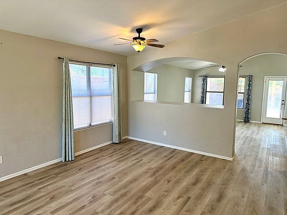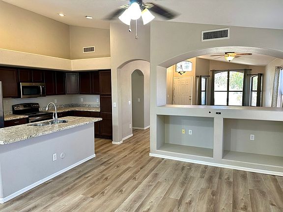 Stunning and dramatic Mesquite Canyon home on corner lot with no neighbors behind. Light and open floor plan with 4 bedrooms and 2 baths, ceiling fans in all rooms, family room w/built-in entertainment center. Refinished kitchen cabinets, granite countertop, stainless appliances, fresh paint inside, new LVP (Luxury Vinyl Plank) flooring, garage cabinets, epoxy garage floor. Newer energy efficient Trane A/C. Excellent Schools, close to shopping & freeways. Washer and dryer included if tenant wants them. Credit under 600 pays 1.5 times rent as security. Vacant on lockbox on front door. Email agent for status and all questions. $40 credit/person over 18. $200 initial admin fee, 2% per month monthly admin fee. This property allows self guided viewing without an appointment. Contact for details.