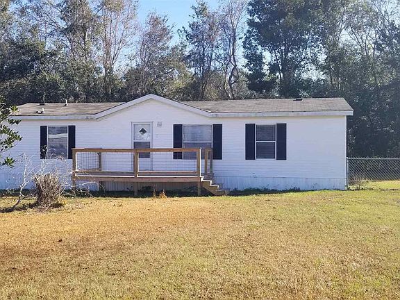 Nicely remodeled 3/2 manufactured home on small private drive. New carpet, paint, skirting, deck rails, and master bath vanity. LVP flooring in kitchen/laundry and master bath. Walk in closet in master. Seller will provide new stove, refrigerator, and dishwasher before closing. Large level yard with the back fenced. Home is located close to I-10, new Walmart and Amazon Distribution Centers. Why pay rent when you can buy! Buyers' agent responsible for square footage accuracy.