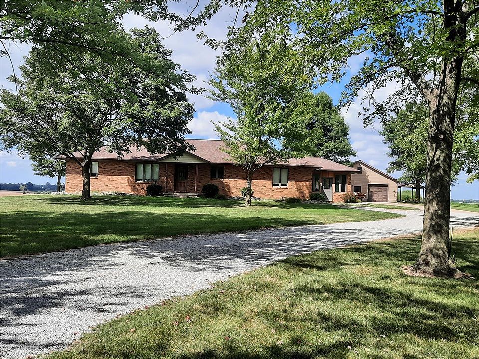 Just what you have been waiting for! Watch the sunsets from this nice brick ranch home on approx. 2 acres only 5 min. from town. This spacious home has a split BR floor plan, a great kitchen with cherry cabinets, a large center island and much more. The family room also works well as a formal dining room with a pass-thru window from kitchen. The fin. bsmt is ideal for entertaining with a 3/4 bath, kitchen set-up, pool table and dry bar already there. Enjoy watching the sun rise sipping coffee in the 4-season rm. The oversized 2-car att. garage has a heater and separate entrance to the basement. The 34 x 56 (part. heated) shed w/half bath and loft for more storage is what you have always dreamed of. A small covered concrete pad will be ideal for your outdoor pet. The well water is hooked up to a separate kitchen faucet and spigot outside near sun room. Trees galore including many pecan trees. Come see for yourself! Agent Related. Additional Rooms: Sun Room