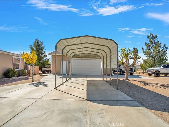 Welcome to your Dream Desert Oasis! Nestled on 1.5 acres of meticulously maintained property, this stunning modular home boasts a very nice split floor plan, offering both privacy and functionality. With 3 bedrooms and 2 baths spanning across 1568 sq ft, Detached garage with 800 sq ft and 10' high. 50 amp RV plug in at the backside of the garage. All Tree's are set up on a drip system for convenience. Additional outlets at BBQ, Pool and Shed as well. This move-in ready residence is designed for modern comfort.