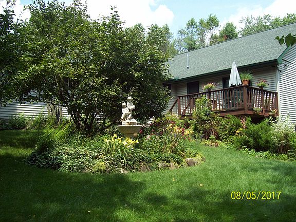 Treat yourself to a beautiful setting in the Town of Amherst just 15 minutes from Stevens Point. You will love the private, wooded, 2 acre parcel and the 24' X 28' insulated workshop. A 2012 entry in "Garden Walk", the landscaping includes assorted, raised beds, raspberries, grapes and blue berries and a great variety of trees: hydrangea, cherry, plum, and magnolia just to name a few.The list of improvements is impressive: paved driveway in 2008; garden shed in 2010; new roof on the house and shop in 2013; water heater in 2015; refrigerator, range/oven, micro wave hood-fan all in 2016; fabulous Travertine Tile in the Kitchen, Dining Room, Hall Bath, Master Bath, Foyer and Laundry and gorgeous kitchen counter tops in 2018. Other features include: an oversized walk-in master shower (no doors needed) 6 panel doors; closet organizers; tons of storage; private master bedroom deck; covered front deck, gas fireplace; theater room; fiber optic internet from Amherst Telephone. Natural gas is available at the street on Sumac Circle.