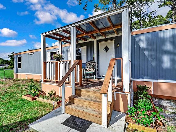 This well kept 3 bedroom/2 bath mobile home on a fully fenced and gated 1 acre lot is located on a quiet street not far from the Amelia Island beaches! The new covered front porch is perfect to enjoy your coffee in the mornings. Kitchen has new counter tops and cabinets and is open to the living room. New flooring throughout except in the Master bathroom. New back porch and steps lead you out to the fenced back yard with lots of fruit trees and plenty of room to enjoy the sunny Florida weather or even have your own garden.