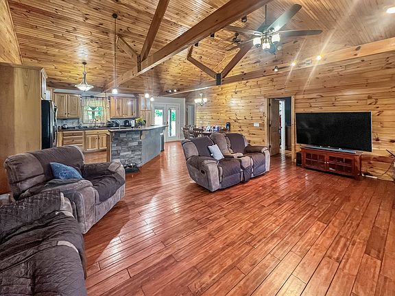 Stunning Country Home on 17 Acres. Gorgeous vaulted wood ceilings & beams, cozy fireplace, and open entertainment setting, recently remodeled bathroom, newly encapsulated crawl space, two-stall garage, & ample storage. Wrap-around porch w/ breathtaking views, ideal for sipping morning coffee & enjoying the sunrise. Equestrian enthusiasts will love the cross-fenced property, which includes a 60X40 barn with electricity, a tack room, five stalls, and a horse run. Enjoy the serene sunset while fishing on your stocked private pond, with ample space that allows for activities like horseback riding, shooting, and exploring. Schedule a private tour today!