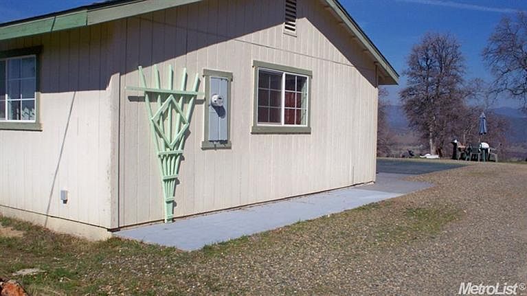 Tons of potential. 2.3 beautiful acres with 180 degree view of Merced River canyon, Sierra Foothills and the Central Valley. 900 Sq Ft garage/shop building with 2 double over head doors, full bath, laundry hookups, ceiling fans, generous electrical and Cable TV connection. Building is fully insulated with painted concrete floors, access walks, and a 1200 Sq Ft attached concrete parking pad. 2 smaller storage buildings.