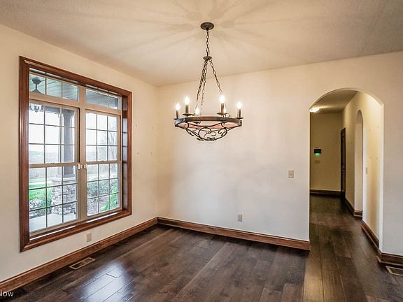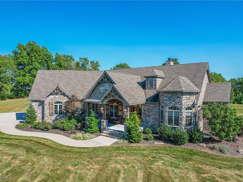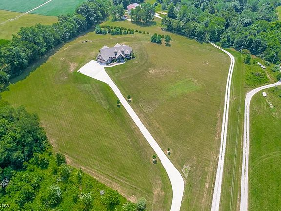 Enjoy upscale country living on 6.5 secluded acres in this beautifully crafted ranch home! A long, lighted driveway winds through trees, leading to a barreled cedar entry and mahogany French doors. Inside, the grand great room features a soaring ceiling and a stone fireplace with a dual-zone Heatilator insert. Step through the transom-topped double doors to a covered back porch with peaceful rural scenery. The kitchen, designed for the avid cook, features a large center island with a hammered copper farmhouse sink, granite countertops, rustic alder cabinetry, and high-end KitchenAid appliances, along with a walk-in pantry. Both formal and casual dining spaces make it perfect for entertaining. Just off the kitchen, an arched entry leads to the laundry room with a wet bar and a hallway to the oversized 3 car garage. A home office and guest bath are conveniently positioned near the foyer. The split bedroom layout creates privacy for the master suite, which has direct access to the back porch, a spacious walk-in closet, and an ensuite bath with a soaking tub and custom tile shower. On the other side, two additional bedrooms, a full bath, and a cozy sitting room offer space for guests or family. The 13 course basement, ready for your finishing touches, is plumbed for a bathroom and bar. Built by Victory Gate Homes with quality craftsmanship throughout, this home offers an extraordinary combination of privacy, space, and luxury. Schedule your showing today!