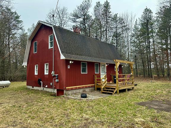 3 Bedroom home on 5 acres, adjacent to state land on two sides and located on a county maintained road. 24X30 pole barn and another outbuilding that has a concrete floor. Many updates throughout the home including New forced air furnace, updated/upgraded 200 amp main electric panel, 30 amp RV plug, washer/dryer hookup installed, brand new deck and upgraded flooring throughout home! Furnishings negotiable.