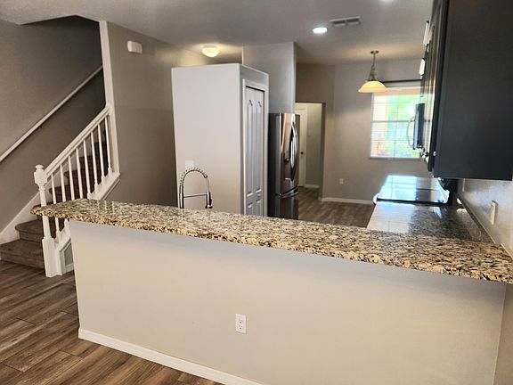 This 3-bedroom townhome with garage is now available. It is located in the beautiful area of Trinity, a skip and a hop to restaurants, a shopping, a medical center, the YMCA, and excellent schools. Townhome is like new, with faux wood gray tile flooring throughout the entire first floor. Granite countertops in the kitchen, crown molding above the 42-inch maple cabinets, cabinet pull-outs, clean steel appliances, window blinds, etc. All three bedrooms provide ample space for comfort. The master bath has a garden tub, walk-in shower, and the master bedroom has an oversized walk-in closet. Pavers line the entrance walk & lanai - and the covered and screened lanai also includes a storage closet. A fenced patio area was built for more privacy. The upstairs laundry room includes a washer and dryer. Come see this beautiful townhome today. The renter is responsible for water and electricity. Deposit is due at the signing of the lease agreement, the first and last month's rent can be collected on the moving-in date or earlier. No smoking is allowed in the house. Up to 2 small pets are permitted.
