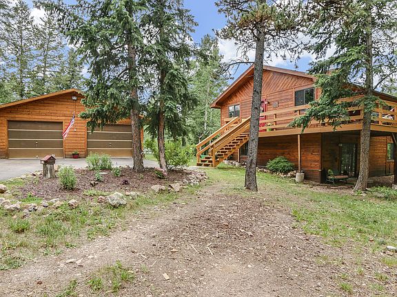Want the convenience and proximity to all schools and shopping in Aspen Park and the privacy of 1.1 acres of flat property surrounded by Aspen, Pine and wildflowers,then you have arrived home. Home is perfectly situated to enjoy large usable lot. Welcoming steps lead to a wrap- around deck with mountain and aspen views. Newly stained exterior, newly stained deck and new Pella windows this house shines with pride of ownership. Moss rock wood burning fireplace creates a warm and glowing feel for those cool days. Walk out slider from living room leads to your private deck framed by aspen. Quartz counter tops, white cabinetry and hardwood flooring in the kitchen. Finished basement offers lodge like feel with light wood paneling, rock accents, new carpet and a wood burning stove. 2 additional bedrooms, full bath and laundry complete the basement. Private access as property line backs to Denver Mountain Park,enjoy hiking and then relax on your hammock with unobstructed views of Mt. Evans.