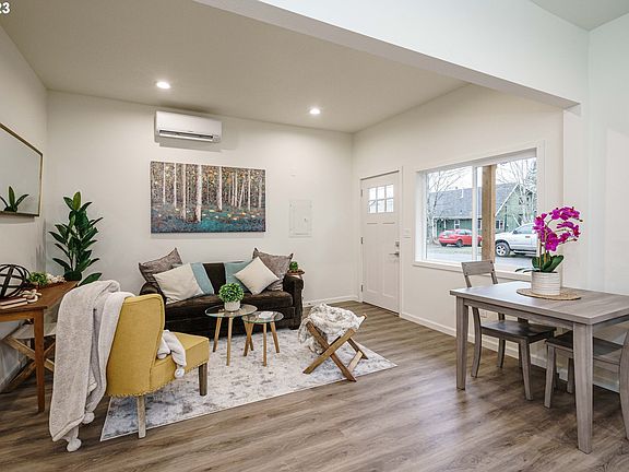Completely and tastefully remodeled home w/ covered front porch. Light & bright with designer materials, colors & touches throughout. LR & Kit. feature high ceilings, new plank flooring w/ a great room feel. New Roof, kitchen, bath electrical, plumbing and more. Bathroom has good storage and new tile shower surround. Spacious bedrooms. Double electric meter & 1" water line for easy future ADU construction. Easy care landscaping. Member of Owner is a licensed agent in the State of Oregon.