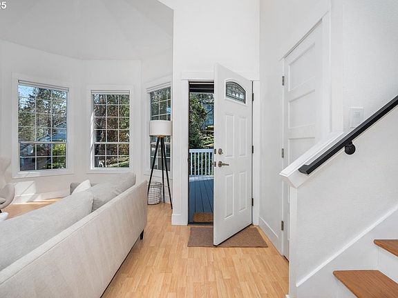 This remarkable home will stand out in your search for the perfect home in southwest Portland. Located on a quiet street on rolling hills, just 1 1/2 miles to Multnomah Village and only 7 miles to downtown Portland. The classic curb appeal is a handsome approach, with a welcoming entry into a bright vaulted living room. Truly outstanding space feels cheerful year-round with huge windows, warm white paint, and light laminate floors. The dining room is perfect for everyday living, special holidays, and to enjoy the charming balcony and sunsets. The kitchen is clean & crisp with so much character; freshly painted cabinets, bar seating at counter, travertine-style tile flooring, and warm-tone wood floating shelves. Stainless fridge & dishwasher are only 4 years old. The heart of the home is in this cozy great room where the kitchen, great room & eating nook adjoin! Turn on the fireplace and snuggle up in this sweet space, perfect to enjoy downtime, games & books. Upstairs are FOUR spacious bedrooms! The primary bedroom suite is impressive; 13' x 20' is a WOW, with vaulted ceilings, en suite bath with double sinks, and walk-in closet. Great quality, like-new light laminate flooring throughout the home. The backyard is fenced with gravel "patio" which makes a great entertaining space for summer BBQ's. Backyard is low maintenance, with access down a tidy path on the left side of the home. Enjoy this easy care yard as it is, or reimagine this outdoor space with your own dreams for a backyard. Just minutes to neighborhood parks, grocery, coffee & schools. Little trail at the end of the street for easy access to walks in the surrounding neighborhood. HUGE storage space under the home. An inviting home with comforting hallmarks of traditional design, layered with the lessons of today's bright modern style. [Home Energy Score = 8. HES Report at https://rpt.greenbuildingregistry.com/hes/OR10237087]