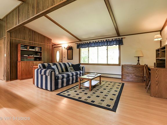 Come see this 1800 sq. ft. Ranch on five acres just west of Huntley. Located on a quiet road you have easy access to I 90, the Huntley schools and shopping. This home is solid but is ready for your updating. Highlights include a large family room with a free standing Soap Stone fireplace, a full basement, a 24 x 40 supersized four car garage and five acres of land. NOTE:The family room wall a/c unit does not work. However, the owners are providing a "HMS Home Warranty." Come bring your ideas and make this your new home.
