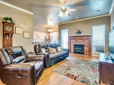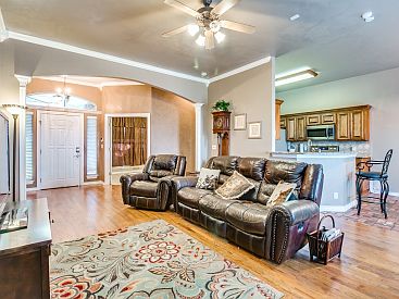 This Absolutely Stunning 3 bed + Office, 2 Bath. Very Open Floor Plan! Kitchen Comes with Granite Counters. Stainless Steel Appliances ,Stained cabinets, Breakfast Bar, plenty of storage. Beautifully accented Woodwork! Large, Open, Living with Wood Floors and Stunning Entry. Spacious Master Bedroom and a Master Bath, which includes Jetted Tub, Marble Counters, His & Hers sinks, Separate Walk-in Shower and Large Walk-In Closet. Plenty of Linen Storage. Nice Size Laundry room with Extra Storage! Ceiling fans. Landscaped Yard with Covered Patio which includes a Built-in Wood Fencing! 3 car garage . One of my many favorite features in this home is the Cozy feeling you get when you walk in the door! Whether you are into Entertaining or Relaxing this is the home is Just For You!
