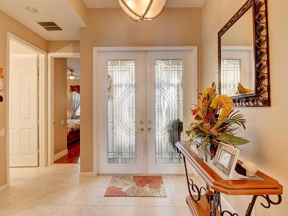 Location, Location, Location! This Alexander Model has 2 Bedrooms + Conv Den/Bedroom, 2 baths and Expansive Lake Views with fenced in yard. The A/C is 2 years old, New water heater, Accordion shutters which includes special shutter for Glass designed front doors. The extended Lanai has a screen enclosure, recently upgraded designer color cement tiles, electrical outlet and wall mounted TV bracket for outdoor viewing and is large enough for a hot tub (includes 220 electrical line already in place), outdoor fan, lights and motion sensor light. The kitchen includes upgraded refrigerator and dishwasher, white cabinetry and white appliances, sink and refrigerator water filtration system, pull-out drawers in lower cabinets, snack bar and breakfast area with bay windows. (more)