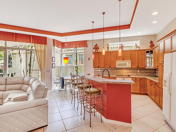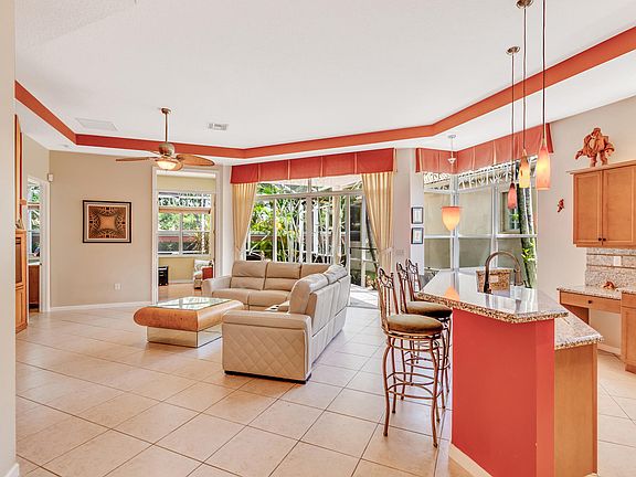 Gorgeous windows let in the light in this bright home. The family room/kitchen and dining room feature tray ceilings with tile laid on the diagonal. There's lots of cabinet space and a cooktop, granite counters, snack bar and breakfast area in the kitchen. This home has two bedrooms plus a den, with walk-in showers in both baths. The generous screened-in patio has a covered area with a ceiling fan, so you can grill outdoors and enjoy the Florida weather. Buena Vida offers an active resort lifestyle with a gym, café, and tennis complex and plenty of activities to enjoy. The quiet location is located close to shopping, dining and equestrian events, and is near Okeeheelee Park's trails and golf course. The Kravis Center, City Place, and Palm Beach Int'l Airport are just a short drive away.