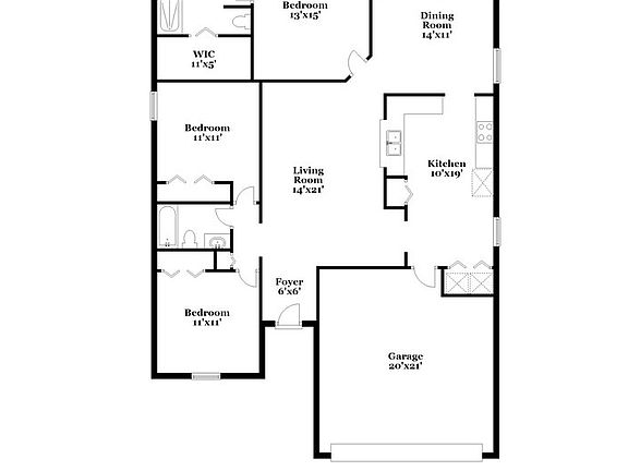 Two-car attached garageThree bedroomsTwo bathsGenerous pantryGarden tubLighted ceiling fanLovely tile floor