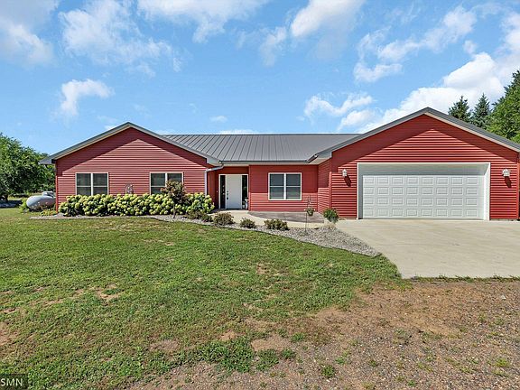 Becker Retreat close to town! 1 owner custom 2016 built 1 story slab on grade home on 5 wooded acres with a 24x40 shed and a pond with an island! Walk in the large open foyer to an open concept living room with a gas fireplace and pictures windows, attached to an enormous eat-in kitchen that walks out to a stamped concrete patio or the other way through a mudroom to the insulated 3-car garage. On the other end of the home, this home has a large master suite with a private bathroom with a separate shower and soaking tub and a walk-in closet; 3 other large bedrooms with built-in closets and additional full and ½ bath. Some of the upgrades this home boasts include in-floor heat with forced air conditioning, engineered wood or tile floors throughout, tile showers, tile backsplash, stainless appliances, granite counters, and 9-foot ceilings. This home has Marvin windows and a brand new steel roof.