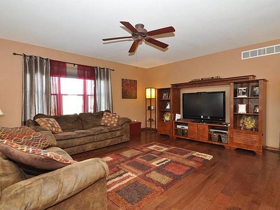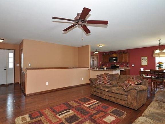 Fantastic open concept Ranch in move-in-condition! Great kitchen set-up with tons of cabinet/counter space, pantry, Stainless steel appliances and spacious dining area. Large cozy living room. Gorgeous Hickory floors. First floor Laundry/Mud room. All bedrooms have walk-in-closets. You'll be impressed with the Spectacular Rec Room with media area, bar, separate den and half bath. Many 6 panel doors. Newer carpet in BR's and lower level. Rear deck awaits your Summertime BBQ's.