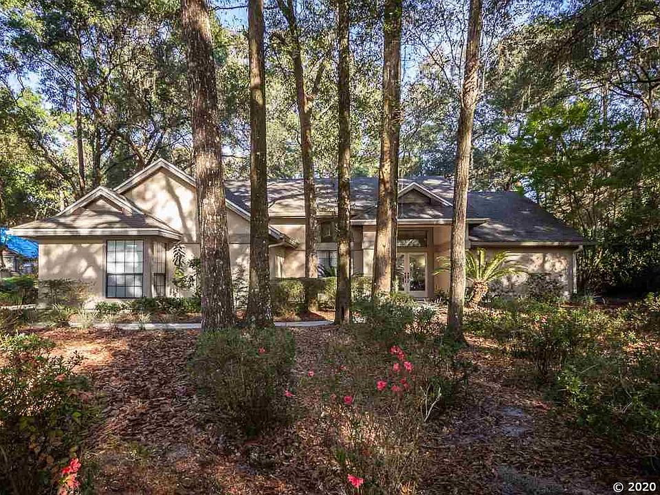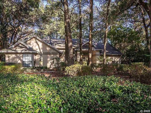 There are so many ways to enjoy this 3way split plan home! Your 4th bedroom can be an in-law suite, guest room, study, studio, etc. The enormous screen enclosed lanai area makes entertaining for large groups a breeze or dinner for 2 a tranquil, relaxing area. Multiple french doors access the lanai. Your master bedroom is spacious, has a walk-in closet and a great master bathroom. Separate vanities w/individual sinks, a jetted tub, walk-in shower and private water closet complete the ensuite. Enjoy the cozy family room with gas fireplace & built-in cabinets, the separate breakfast area and open kitchen. Wood flooring and a new roof were installed in 2013. For your added peace of mind the Seller is providing a one year Globe Home Warranty. An oversized garage is great for hobbies, storage, and more. This quiet cul-de-sac home is close to Haile Village for shopping, restaurants, farmer's market, etc. The Haile Plantation community has wonderful walking trails and is proximate to great schools, extensive shopping, entertainment, and just about anything you might be looking for. Golf and pool memberships are available.