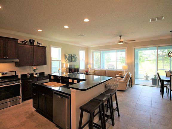 Why build new when you can own this 4 year old, move in ready, upgraded home in an established neighborhood for tens of thousands less? It will be hard to locate a better view than this at this price too! Rounded drywall corners, crown molding everywhere, granite tops, upgraded cabinets in kitchen along with stainless steel appliances, upgraded wood trim around windows, gutters and downspouts throughout are just some of the many upgrades in this home! A gas furnace, gas stove, and gas bib for the dryer along with a solar powered attic fan mean that you save money on your utility bills too! Wait till you see the view from your backyard! This home backs up to a massive, landscaped buffer which means privacy when you are enjoying time on your lanai. Put this home on your must see list!