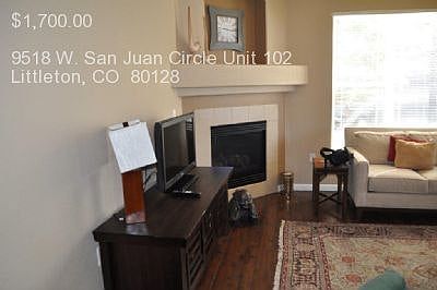 Super Clean newer 2 Bedroom, 2 Bathroom Condo in prime Littleton location. Right off C470 and Kipling. Nice wood floors, spacious kitchen with all appliances included. Master Bedroom has large walk in closet and 4 piece Master Bathroom with his/her sinks. Located on the ground level with walk out patio to open space and mountain views. Comes with clubhouse, workout room and outdoor swimming pool!! Condo unit comes fully furnished for $1700.00 a month. If you do not want furnished owner may remove furnishings upon request. First/Last months rent plus security deposit due at signing NO PETS please. Application fee is $45.00 per adult Application fee of $45.00 per adult. No Pet's please.