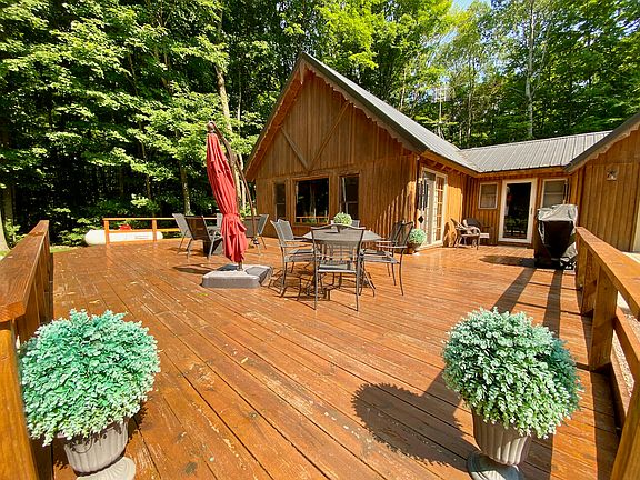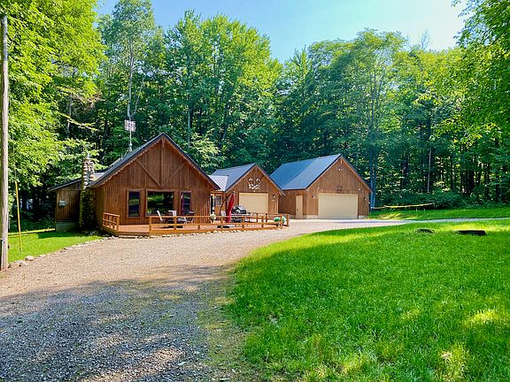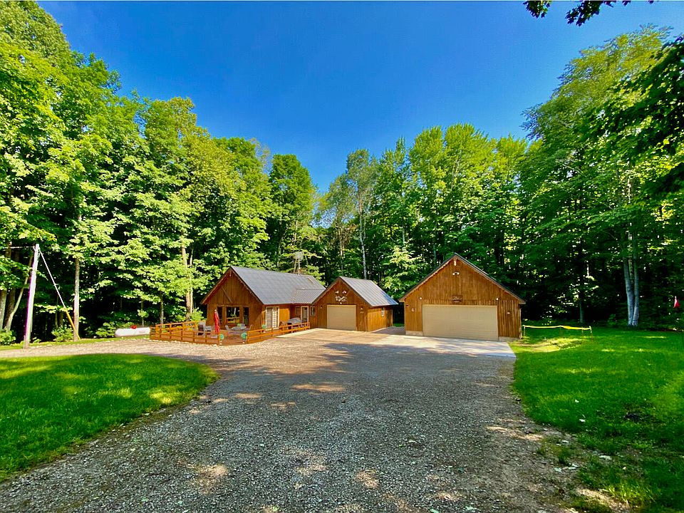 Welcome home! You'll love living in this sensational Up North home. Enjoy your morning coffee as you relax on the huge deck enjoying nature. This spacious, open concept home features a vaulted ceiling, with log rafters and knotty pine. On those cold northern MI days, family and friends will love the stone fireplace. Kitchen features new cabinets and counters, full view of the living room. Master bedroom features a sitting area and gas fireplace. The family room just off the kitchen offers extra entertaining space. The attached 16' x 24' garage is finished, attic storage and has a separate heater. The detached 24' x 30' garage is finished, attic storage & separate heater. Huge wraparound deck with a grilling area. Home being sold completely furnished. See docs for recent upgrades