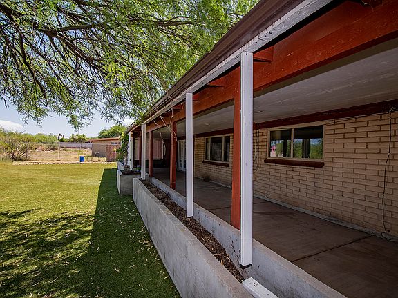 Lovely 3 BR/2BA on a great Cul-de-sac Lot! Freshly painted with updated Baths and kitchen. This special home has a large Family room with French Doors in addition to Great room! Rear yard is 143 feet in width and has a huge covered porch for extra outdoor living space. (Great ping pong table space) Concrete Planters for those who enjoy outdoor flower beds or gardens. NEW A/C INSTALLED in 2019!! Appliances included and there is a good sized laundry room. Tile and Pergo Wood floors. MBR with enlarged Luxury spa Bath and Granite counter sink vanity, great spot to relax at the end of a long day. Hall bath is completely remodeled also. 2 large storage sheds-potential workshop space in one of them. Room to roam in Lg rear yard, Enjoy Nice green turf (no watering or mowing). Home sweet home!