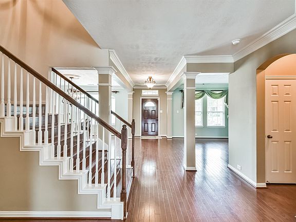 Back on Market. Welcome home to this amazing David Weekly floorplan in the beautiful Gleannloch Farms Community. This one is a stunner with 4 bedrooms, 3.5 baths, formal dining, breakfast room, two living areas downstairs. Gleaming wood laminate floors throughout the main living areas downstairs. High ceilings, crown molding, recessed lighting, and abundant natural light throughout. Open concept kitchen with granite counters, stainless appliances, ample cabinets and counter space and center island. Covered backyard patio overlooking the 9 ft deep pool w/spa and 3 waterfalls.Upstairs features 3 spacious bedrooms, 2 full baths, game room and a media room.Gleannloch farms amenities include tennis courts, baseball and soccer fields, baskeball pavilion, 3 pools (one is being renovated into a lazy river), a spash pad, multiple parks, 5 lakes with catch and release fishing, walking and biking trails, equestrian center, fitness center and golf course.