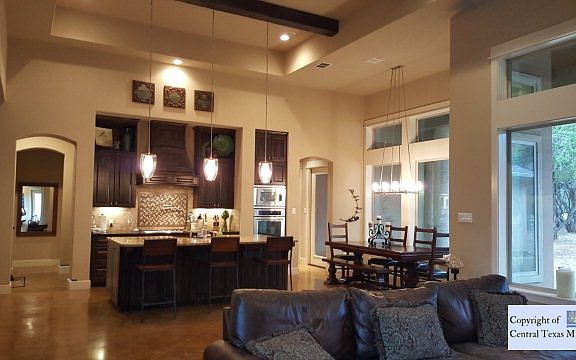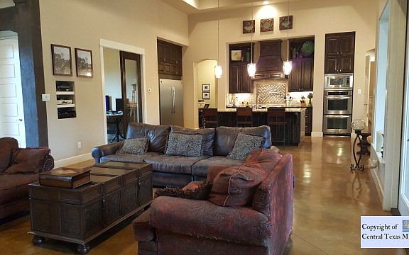 Custom home on 1.44 acres in Hill Country setting Located between Garden Ridge & New Braunfels. Stained concrete throughout, Gourmet kitchen with 5 burner gas cook top, double ovens, butler's pantry, center island and breakfast bar. Spacious master retreat with elegant bath, walk through shower, tub and his and hers vanity. Media Room with Wet Bar.