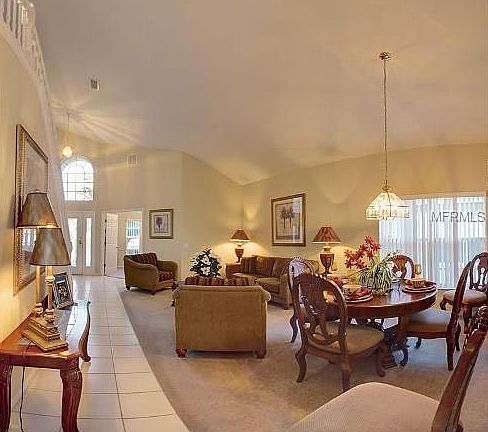 BEAUTIFULLY FURNISHED AND ACCESSORIZED, ONE OF A KIND, TURN-KEY HOME in popular FOUR CORNERS Community. The home features an inviting and open floor plan. Luxurious, expansive master suite, sitting area and huge master bath with Jacuzzi jetted tub and large walk in shower located downstairs. Vaulted ceilings in living areas, separate formal living and dining areas. 3 additional bedrooms plus a spacious loft on the second floor. Recess lights, custom fixtures and newly painted interior, read to move in or rent. The sun stretches across the large, screened in pool deck all day making it perfect for entertaining and enjoying the Florida Sunshine year round! Take a swim in the heated Pool or relax in the Spa, only home in community with water slide for even more fun. Play fussball or shoot a round of pool. This home has it all! Located close to all attractions Disney World, Universal Studios, Sea World and fabulous shopping and restaurants. Orlando International Airport is very convenient, also the City of Tampa attractions are only about an hour's drive, see Busch Gardens, Lowery Park Zoo, the Tampa Aquarium, art galleries and more. THE FOUR CORNERS community offers a Community Pool, Playground, and Tennis courts. Atlantic and Gulf Beaches are close by too; don't miss this fabulous home. Bookings in place, transferable if desired. Call today to schedule a showing!