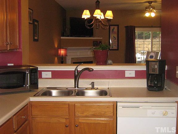 Move in Ready! You will love this 3 bedroom 2 1/2 bath townhome. Open floor plan. Features smooth 9ft ceilings on first floor. Gas fireplace w/ marble surround. Hardwood flooring throughout. Master bedroom as vaulted ceiling. Security system. Nice patio with private back. Community offers pool, clubhouse and playground. Convenient to I-40, Streets of South Point Mall, UNC and Duke.