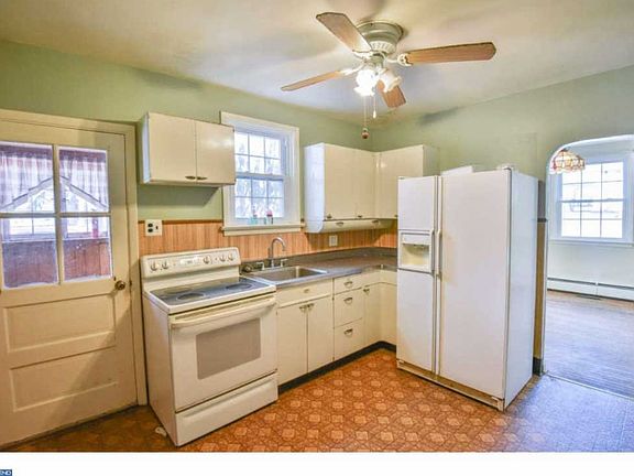 Location, location, location, in desirable borough of Collegeville. Some TLC will make this large solid brick cape a keeper. There are oak hardwood floors throughout and when refinished will be beautiful. The main floor consists of an eat-in kitchen, living room with wood burning fireplace, dining room, family room, 3 of the 5 bedrooms, full bath and quaint four-seasons room. The remaining 2 bedrooms are on 2nd level along with the 2nd full bath. The full unfinished basement has a wood burning stove. Privacy and space is what you'll find in the rear yard. Whether you like to entertain, garden, relax or play, this property will accommodate all. An over sized 2 car detached garage sets towards the rear of the property. Close to everything, you can walk to college, shopping, eateries and more. Come take a look.