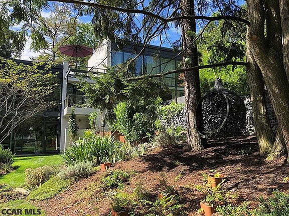 This stunning mid-century modern architectural gem, designed by Lou Inserra, is located in the Vallamont neighborhood. The home has been completely updated & was significantly remodeled by architect Art Anderson; & Hudson Architecture. Upgrades were carried out by Greene Custom Building Inc. This light-filled, multi-level dwelling is full of aesthetically pleasing details: dramatic large double glazed Low-E windows, walnut HW floors, state of the art electric floor & ceiling ThermaRay heating system (along w/Mitsubishi heat pump & A/C), individual room controlled sound system throughout, security system, wood stove FP w/efficient Morso insert, 2 gas FP's, LED lighting w/dimmers throughout, sleek powder-coated aluminum trellises over outdoor dining areas & patio water feature. A luminous and wide foyer serves as the focal point for 2 sides of the minimalist facade. which is comprised of a series of white cube-like structures. living space which includes a chef's kitchen & expansive dining/living area overlooking a private large outdoor seating patio. A sculptural staircase leads upstairs to a spacious Owner suite w/floor-to ceiling windows, WIC's, well-appointed Owner bath. The 2nd cube structure houses a large LR with floor-to-ceiling windows, 2 bedrooms overlooking Walnut Springs Park, laundry area & full bath w/steam shower. A cascading staircase opens into an airy multi-purpose space/FR/art studio w/LR/bath for guests. Terraced landscaping. Unique & a must see property!
