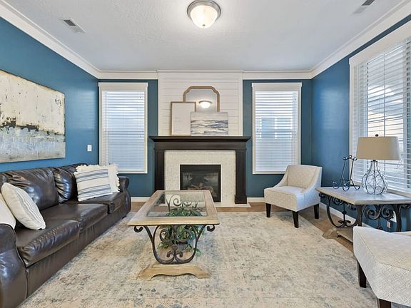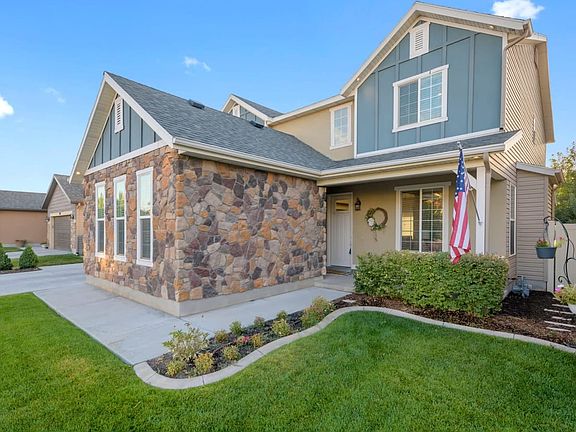 Stylish solar powered 5 bedroom home located on a quiet street with park. Be welcomed by a warm fireplace, new modern farmhouse trim work and tall 9 foot ceilings. Private office space with custom built-in storage, a large mudroom with lockers, large kitchen with HUGE island, double ovens, gas cooktop, granite countertops, backsplash, new lighting fixtures, lots of storage, and an amazing great room with two story ceilings. Fully landscaped with covered back patio and 3 car garage.