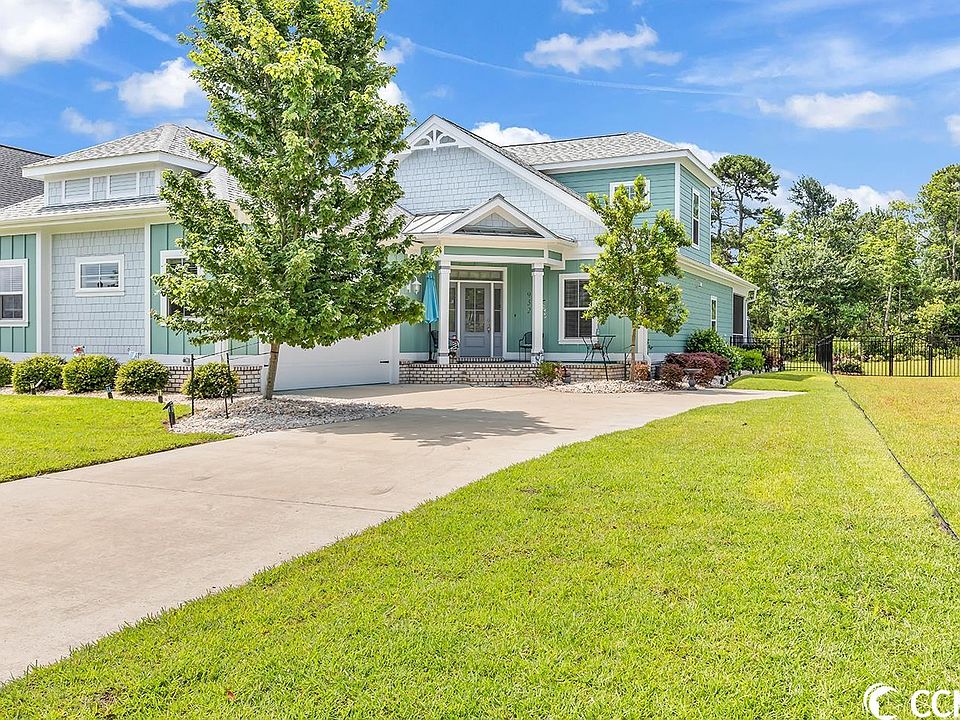 Stunning bright and spacious 4 bedroom custom home in the resort style living community of Waterbridge. This custom home features 4 bedrooms, 3 baths, granite counter-tops throughout, Stainless Steel appliances, a large walk-in kitchen pantry, custom shelving in the mater bedroom closet, and a covered front porch. Enjoy the sounds of nature and refreshing breeze from the screened back porch with custom shades overlooking the large fenced-in backyard. The first floor includes the owners suite with tray ceilings, double sinks, fully tiled walk/roll-in shower with rain-head, hand-held shower heads, and a heated Everclean Whirlpool jetted bathtub. Also, the first floor includes an additional bedroom and full bathroom with a tiled shower, laundry room that includes cabinets for storage, a utility sink, granite countertop for folding, a dining room, spacious kitchen that is open to the great room with soaring vaulted ceilings. The kitchen is perfect for entertaining with the large island, farm sink, stainless steel appliances including refrigerator, range, dishwasher, and microwave. The tall kitchen cabinets stand out with the custom lighting and stunning tile backsplash. The second floor has 2 bedrooms and a full bathroom including a shower/tub combo. Each bedroom and great room have lighted ceiling fans. This home has extra features such as a Foil Radiant Barrier in the wood sheathing in the roof, aluminum flashing and gutters where required, fiber cement trim boards on the exterior, raised concrete slab foundation, side load garage with utility sink and extra side room for cabinets, HVAC is a 14seer 2 zone, each room wired with cat6, low-e double-paned glass windows, tray and vaulted ceilings, contemporary comfort level heights on counters, covered front porch and more. - Residents of Waterbridge enjoy a multitude of amenities including one of the largest community pools in SC with a lap pool, main pool, hot tub, swim up liquid lounge and pool deck. In addition, you will find a newly renovated club house with pool tables and ping pong, fire pit, fitness center, tennis courts, basketball courts, bocce ball courts, floating dock, boat launch, along with boat & jet ski storage, and panoramic lake views. You are just a short drive to the local beaches, golf courses, shopping, dining, hospitals, entertainment & attractions and the Intracoastal Waterway. Waterbridge is in Carolina Forest, one of the top award-winning school districts in South Carolina. Don't miss out on this resort style living!
