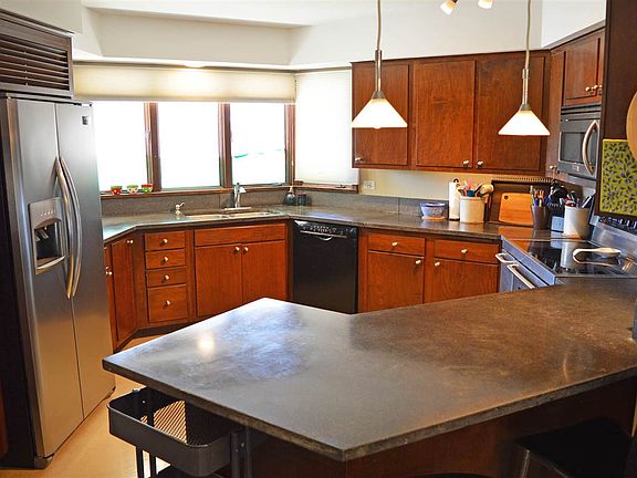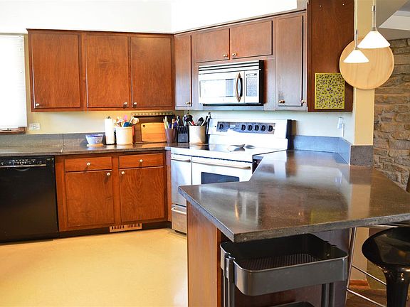 Amazing custom-built 1964 tri-level on Gustave cul-de-sac. 4-5 bedrooms, 4 full baths. Beautiful & spacious layout w/ fantastic natural light throughout. 2-sided wood-burning stone fireplace. All kitchen appliances remain, washer & dryer negotiable. Convection oven. Brand new vinyl composite roof, November 2017 w/ 15 yr warranty. Heat pump (+ gas forced air) & central air. Low voltage electric, recessed lighting, easy access master dials to illuminate entire house. Ceilings refinished. Custom stamped concrete in baths. Hardwood floors. Newer high-end laminate flooring. Concrete countertops. Incredible storage throughout. Bed 4 set up as office w/ built-in desk & shelving. Beds 2 & 3 both have built-in desks. Lower level could be 5th bedroom. Full baths - master, upper level, lower level & attached to laundry rm. Spacious garage w/ extra storage. Lower level walkout to back yard. Patio. Negotiable possession.