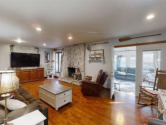 Tucked away at the end of a quiet street, this secluded property offers privacy, space, & comfort on 6.83 wooded acres! Groomed trails wind through the woods, creating a retreat-like setting with a truly private feel. The home features 2 bedrooms & 2 bathrooms, two wood-burning fireplaces, & a heated & cooled sunroom perfect for year-round enjoyment. The partially finished basement offers an additional room with potential for expansion (egress window needed). ADA-compliant doors & a patio ramp provide added accessibility, while the primary suite provides to the deck & hot tub-ideal for relaxing & taking in the serene surroundings. Outside, you'll find a fully fenced backyard & a 30x40 heated shed/garage with a tandem door & drive-through access, plus an attached garage with a whole-house fan. Major updates provide peace of mind, with a HVAC system, appliances, & roof all approximately 4 years old. This unique property combines modern conveniences with a private, nature-filled setting!