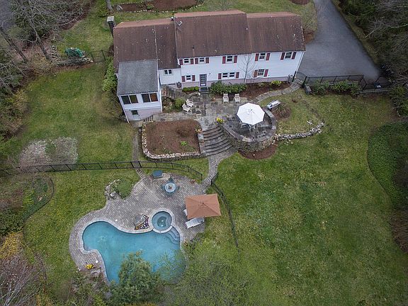A fabulous home for entertaining and barbecues offering the MOST beautiful private backyard with delightful pool and spa and play area and nice woodland views. Inside is nicely laid out with four bedrooms and a floor plan offering a place for everyone on four finished levels. Sunny,good sized rooms. Convenient location to Wilton, Ridgefield and New Canaan all in one! An excellent value on over 3 acres. Owner prefer 6 month lease. Option to buy available. Available immediately. Partially furnished.