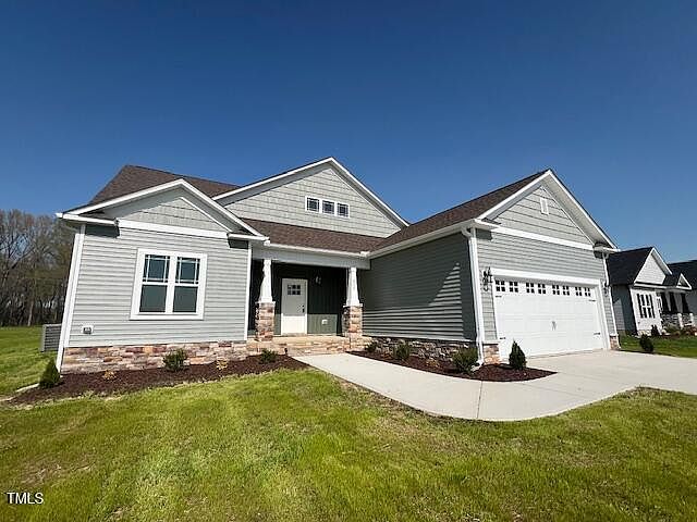Peace & tranquility await you. This craftsman-style, energy-efficient plan offers open-concept living with plenty of room for privacy. All one-level living. Gorgeous GOURMET kitchen features stainless steel appliances with smart, built-in wall oven, cooktop, soft-close shaker cabinets, granite countertops, tile backsplash, recessed & pendant lights & walk-in pantry. Gather with friends & family around the island and spacious living room & dining area. Retreat to the Primary Suite, separate & tucked away, that showcases a dramatic, double-tray ceiling, large walk-in closet with custom-built wood shelves & bath with separate vanities & walk-in shower with a beautiful, custom clear-glass door. Natural light pours in and detailed trim adorns select rooms. Play basketball in the drive and take in the gentle breeze on the rocking chair front porch and screened-in back porch overlooking the flat backyard ideal for entertaining. Small, local builder. Feel the difference.
