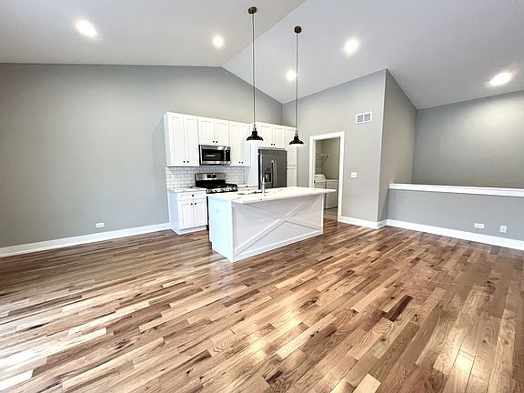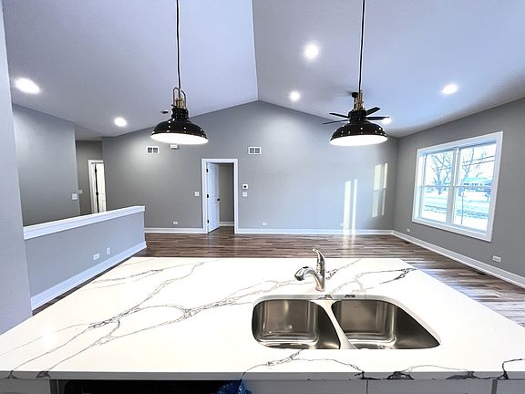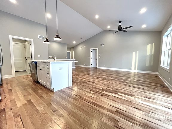 GORGEOUS BRAND-NEW HIGH-END CONSTRUCTION, JUST COMPLETED. NO ASSESSMENTS, NO HOA DUES! RANCH 1/2 DUPLEX, LUXURY HIGH-END QUAILTY MATERIALS AND CRAFTSMANSHIP. 2 BEDROOMS, 2 FULL BATHROOMS. HIGH VAULTED CEILINGS. GORGEOUS HARDWOOD FLOORING THROUGHOUT. OPEN-CONCEPT GORGEOUS KITCHEN OVERLOOKING LARGE LIVING ROOM & DINING AREA, HIGH END TALL SOFT CLOSE SHAKER CABINETS AND DRAWERS, QUARTZ COUNTERTOPS, WIDE SPACIOUS QUARTZ BREAKFAST BAR/ISLAND, BEAUTIFUL TILE BACKSPLASH, STAINLESS-STEEL APPLIANCES, REFRIGERATOR, STOVE, BUILT IN MICROWAVE, DISHWASHER, DISPOSAL, PENDANT LIGHTS. SLIDING GLASS DOORS LEAD OUT TO CONCRETE PATIO IN THE BACKYARD. MASTER BEDROOM SUITE WITH ITS OWN PRIVATE FULL BATHROOM THAT HAS BEAUTIFUL STONE TILE FLOORING, DOUBLE SINKS, WALK IN CLOSET. CONVENIENT MAIN LEVEL LAUNDRY ROOM WITH BEAUTIFUL CERAMIC TILED FLOORING. MOST OF THE LIGHT SWITCHES HAVE DIMMER CONTROLS ALSO. SPACIOUS FULL BASEMENT WITH FULL BATHROOM ROUGH-IN. LARGE EXTRA DEEP 2 CAR ATTACHED GARAGE FULLY DRYWALLED AND PAINTED WALLS AND CEILINGS. HIGH EFFECIENCY FURNACE WITH CENTRAL HUMIDIFIER. CENTRAL AIR CONDITIONING. CLOSE TO DOWNTOWN MARENGO, SHOPPING, RESTAURANTS, ETC.
