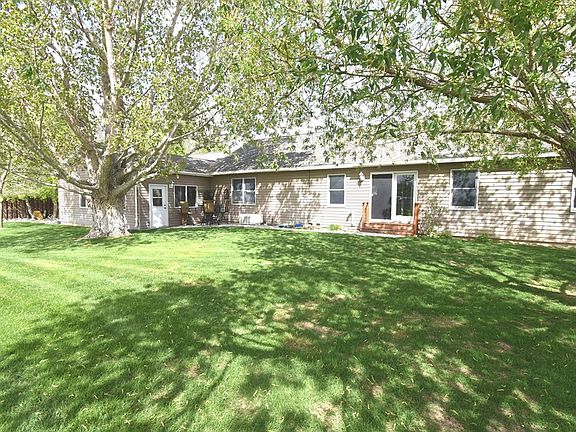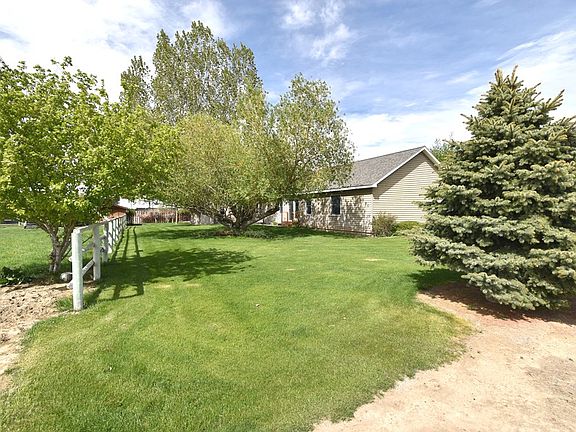 Wonderful family home 3/4 mile from Powell. 3 Bedrooms with walk-in closets, 2 full baths & 1/2 bath in laundry room. very open floor plan. Oversize attached garage 28 x 28, wood shop craft room on back of garage 28 x 23 all with it's own heating system. Bonus room above garage is finished. Covered front deck and patio in rear. Sit in the Aspen grove and enjoy the fire pit. Pasture has sprinkler.