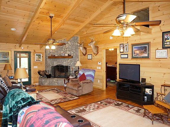 Beautiful, 3 bedroom, three full bath log home situated on 2.88 acres in Fancy Gap. This home offers a large great room with vaulted ceilings with beam accents and wood burning stone fireplace. The fully equipped kitchen has newer major appliance including stainless refrigerator, new convection microwave and garbage disposal. Master on-suite has jetted tub, walk in shower and double closets. Beautiful hardwood floors and T&G throughout. Other features include GE Stackable Washer/Dryer, heat pump, alarm system and propane generator. Completely finished walk out basement New Master on suite, kitchenette with appliances and a Large open living/Den area with beautiful stone wood burning fireplace. On the exterior you can enjoy huge, covered front and back porches, a private yard surrounded by trees and rhododendron, metal carport and new custom built storage shed with power and a propane generator. Just a few miles to the Blue Ridge Parkway.