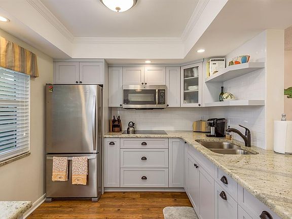 Step into effortless Florida living in this beautifully renovated 2-BED, 2-BATH FIRST-FLOOR END-UNIT CONDO located in one of Dunedin’s most desirable active 55+ communities. Perfectly situated just minutes from VIBRANT DOWNTOWN DUNEDIN, this home combines modern upgrades with an unbeatable location. Inside, you’ll find a FULLY REMODELED INTERIOR featuring a stunning NEW KITCHEN with GRANITE COUNTERTOPS, STAINLESS STEEL APPLIANCES, and a sleek COOKTOP. Durable VINYL PLANK FLOORING flows throughout the living areas, complemented by tile flooring in both bathrooms. Enjoy peace of mind with NEWER WINDOWS and an updated A/C SYSTEM. Relax on your spacious SCREENED-IN PORCH with elegant tile flooring, or take advantage of community amenities including a SPARKLING HEATED POOL and a welcoming CLUBHOUSE. A DEDICATED CARPORT PARKING SPOT adds everyday convenience. Guests will appreciate the beautifully updated 2nd bathroom with new fixtures, tile, and vanity, located just steps from the comfortable guest bedroom featuring a WALK-IN CLOSET. The generous primary suite offers a serene retreat with a tastefully tiled bathroom, complete with all-new fixtures and vanity. Located close to HONEYMOON ISLAND STATE PARK, CLEARWATER BEACH (both previously voted “Best beach in Florida”), championship golf courses, marinas, dining, shopping, endless recreation, major roads to 2 airports, this condo places the best of coastal living at your doorstep. This stunning home is move-in ready. PUT IT ON YOUR MUST-SEE LIST AND SCHEDULE YOUR APPOINTMENT TODAY!