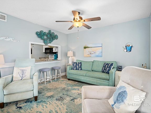 Don’t miss this incredible opportunity to own a desirable vacation rental condo in Gulf Shores! This beautifully updated 2-bedroom, 2-bathroom corner unit is the only one of six in the complex with its own private balcony—and it’s the only one currently on the market! Enjoy your morning coffee on the private balcony as you take in the sunrise with views of the Gulf or sip a cocktail watching the sunset. This unit comes fully furnished —ready to rent or enjoy as your personal getaway. Step inside to discover a bright, coastal-inspired retreat featuring luxury vinyl plank flooring, granite countertops, and a soothing neutral color palette. The ensuite bathroom has been stylishly renovated with a walk-in shower, modern vanity, and a sliding barn door for added charm. Located just across the road from the beach and within walking distance to festivals, restaurants, and the Gulf Shores Public Beach, this condo is perfectly positioned for short-term rental success or unforgettable vacations. Buyer to verify all information during due diligence.