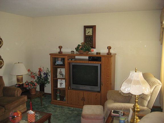 Owner says hardwood floors under carpet in living room and all bedrooms. New roof in 2010. Large family room in basement for additional living space. Lots of open country. No sign.