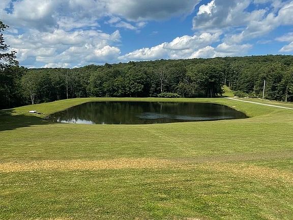 Picture perfect country paradise can be found from the front deck of this sprawling A-frame with a large addition. This 25 acre property has a large stocked pond, plenty of trees and foliage and boarders state game lands! The addition of a 1,400 square foot newly built pole barn is the perfect place to utilize however you want . Inside features an open concept living area with beamed ceilings, a fireplace, large center island and cherry cabinets. sliding doors to the large front deck overlooking the pond. Two master suites with updated bathrooms, two additional bedrooms with a jack and jill bath. Lower level has a family room with fireplace, bar area and a large office space. Truly a one of a kind property .