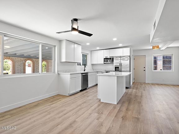 Come see this newly renovated 1721sqft home, located on the east side of Tucson. With 3 bedrooms and 2 bathrooms, this home is beautiful and the perfect size for comfortable living with your loved ones. Step inside to be greeted by an abundance of natural light pouring through the large feature windows, which provide beautiful views of the backyard. The new LVP flooring flowing throughout the home is both durable and easy to maintain. The kitchen has been fully updated with new stainless steel appliances, cabinets and countertops. This home includes a bonus storage area conveniently connected to the house, accessible from the backyard. With no HOA, you'll enjoy the freedom to truly make this house your own. Don't miss out on making this your home today! Owner/Agent