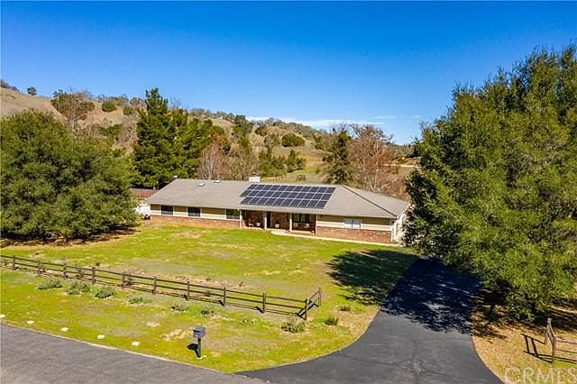 At The Edge Of Paradise Valley in west Atascadero sits this 3200 +/- square foot home on 2.78 +/- acres. The five bedroom and three bathroom home features an open floor plan layout with ample natural lighting opening onto an expansive kitchen with island and solid surface counters. The master suite with walk in closet opens onto the covered patio giving a true indoor-outdoor feel. There is an attached three car garage/workshop with concrete and asphalt approach. The peaceful and usable acreage property is fenced and crossed fenced with views of the surrounding hills. Tucked in Paradise. Come take a look today.